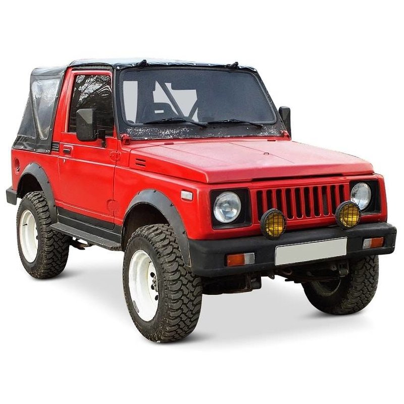 New front window Suzuki Jimny SJ410 / Suzuki Samurai SJ413, clear, no tinted car window. This front window is suitable for a second generation Suzuki Jimny SJ410 and Suzuki Samurai SJ413. Year of construction 1982-1998.